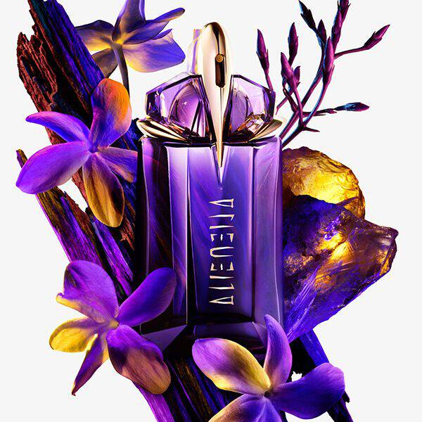 The magical essence of Alien Eau de Parfum evokes a Solar Goddess with an intoxicating mix of sambac jasmine, cashmeran wood, and white amber. Unique amongst fragrances for women, Alien comes in a remarkable glass talisman of the deepest amethyst.