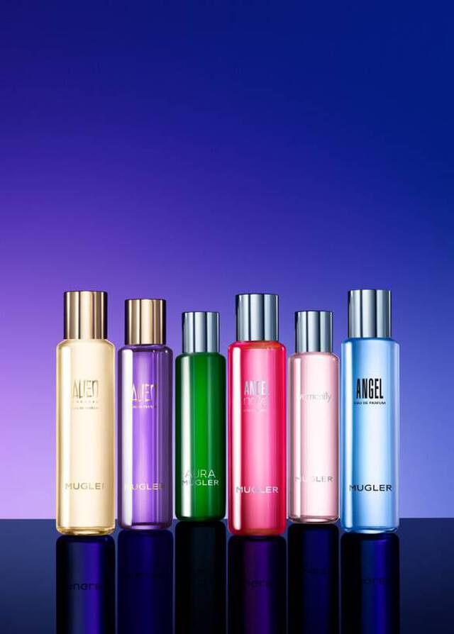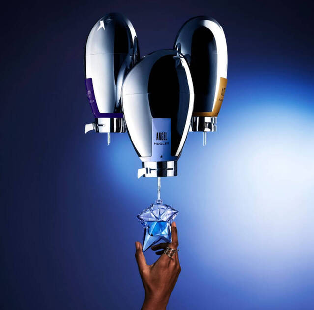 Apart from the object itself, the Mugler Fountain is a unique ritual and beauty advisors are its best ambassadors Broken caps and spray nozzles are promptly replaced. The MUGLER high-end bottles are being taken care off like precious jewels. And, like every precious stone, the refilled bottles are traceable. This professional service is a responsible form of luxury pioneered by Mugler, reflecting the brand's spikiness and singularity