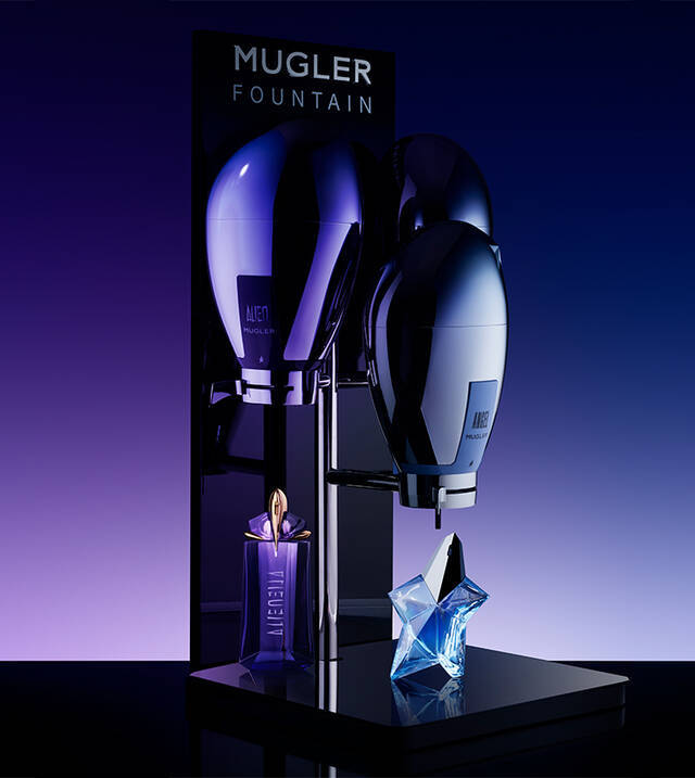 The wholly original Mugler Fountain idea was inspired by the 18th century high society's perfume fountains perfuming their interiors and replenishing their precious bottles with the finest fragrances. This tradition was brought up to date in 1992 with the release of Mugler Angel - a turning point which changed the fragrance world once and for all. It paved the way for ethical fragrance luxury that champions responsible development, waste reduction, and a one-on-one client service before its time. Today more than 10 000 Fountains are available all around the world in perfumeries.