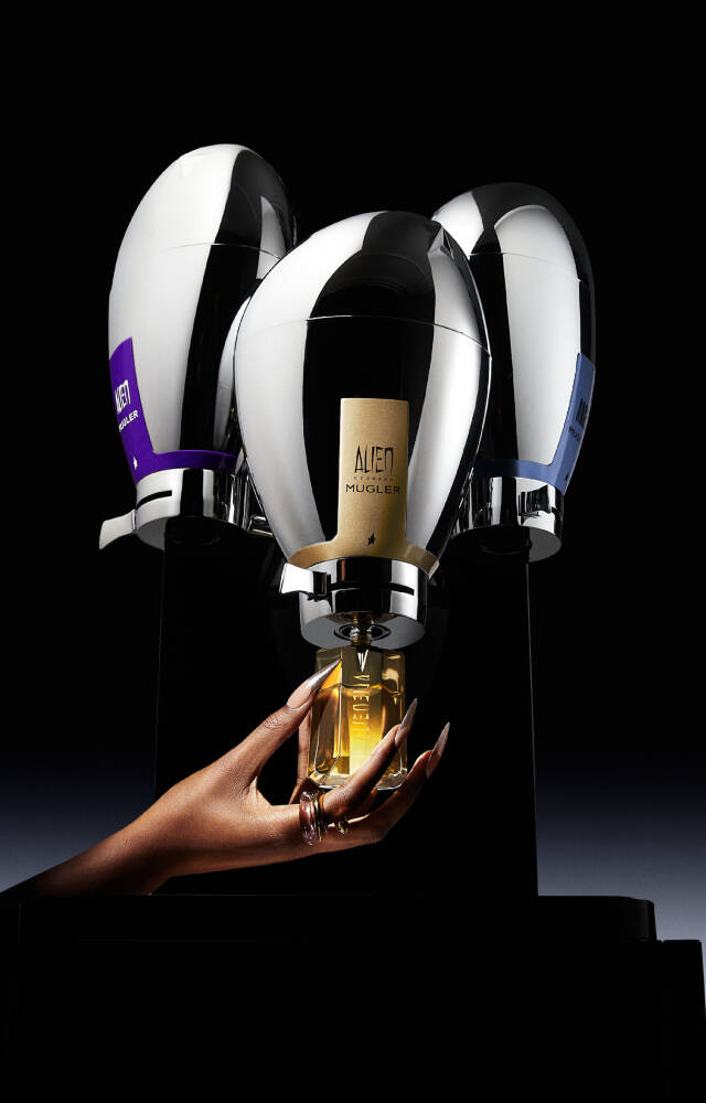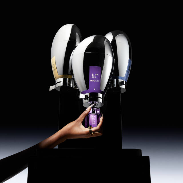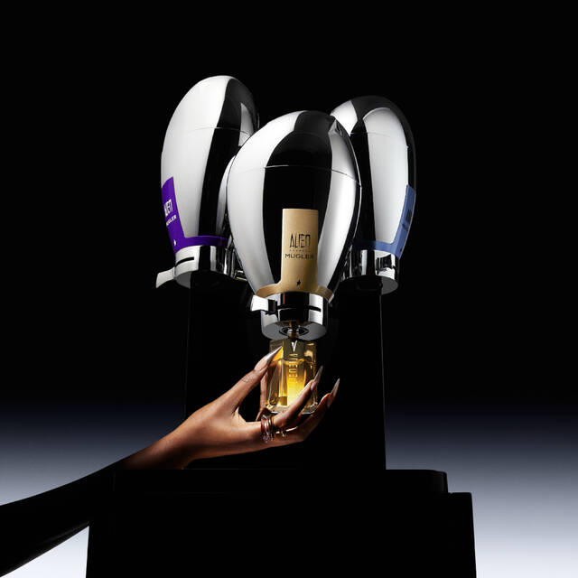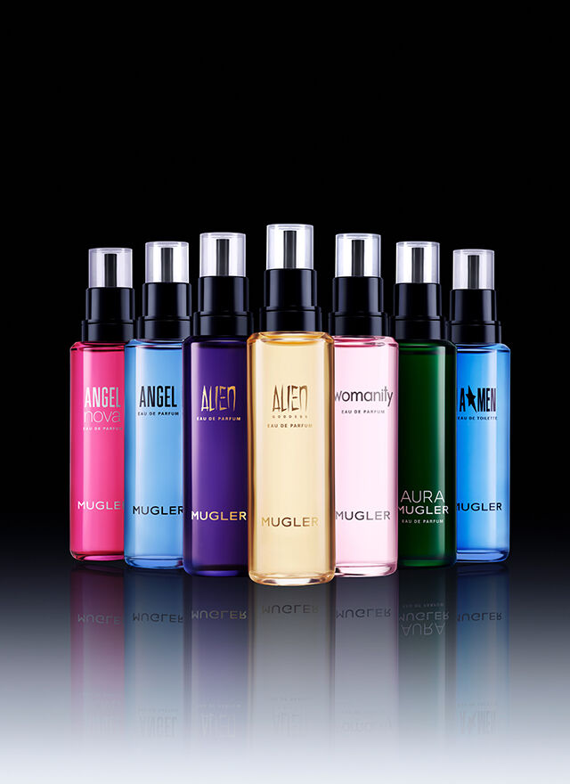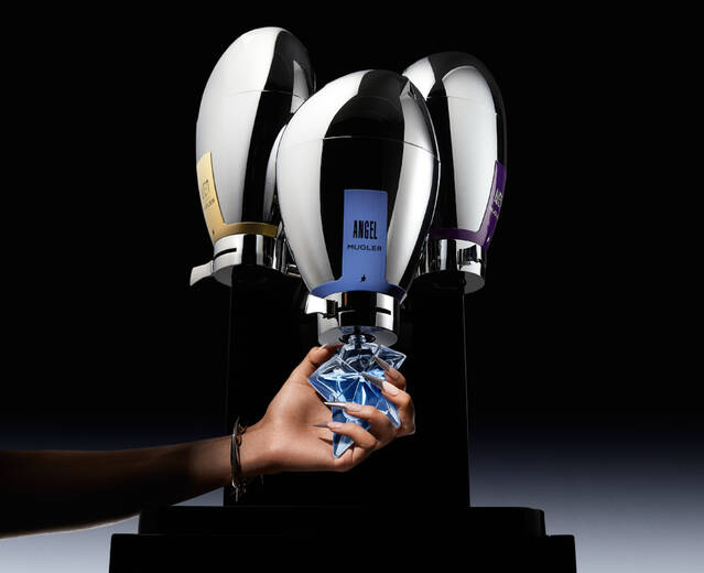 Apart from the object itself, the Mugler Fountain is a unique ritual and beauty advisors are its best ambassadors Broken caps and spray nozzles are promptly replaced. The MUGLER high-end bottles are being taken care off like precious jewels. And, like every precious stone, the refilled bottles are traceable. This professional service is a responsible form of luxury pioneered by Mugler, reflecting the brand's spikiness and singularity
