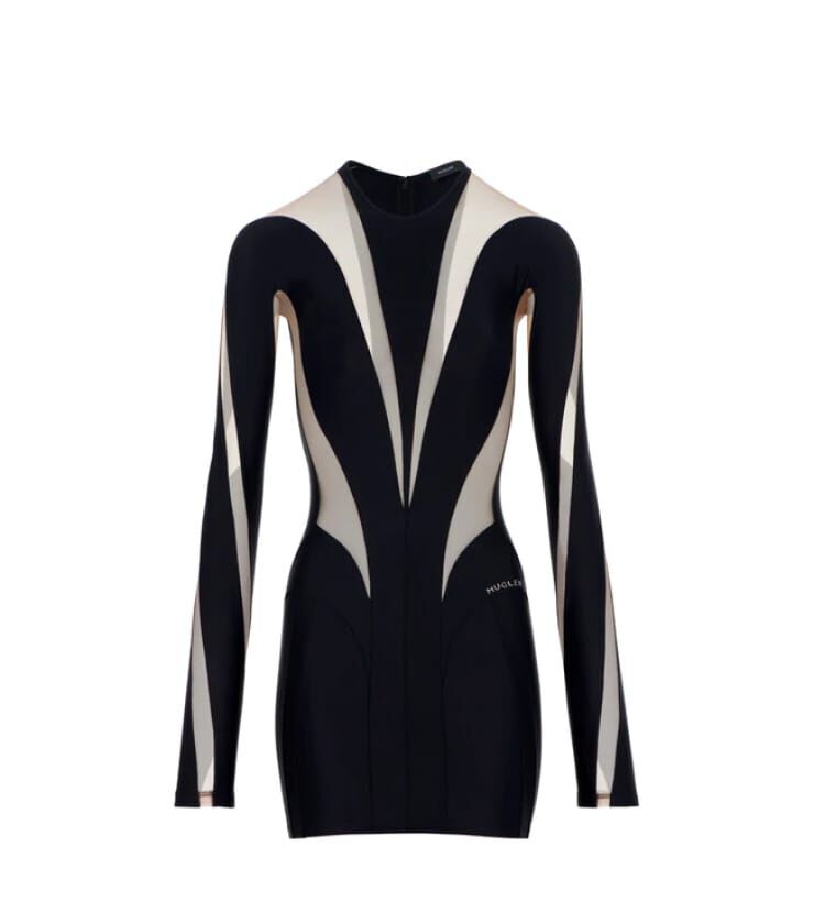 the reveal and conceal of flesh affirms Mugler’s no-holds-barred celebration of the feminine form in