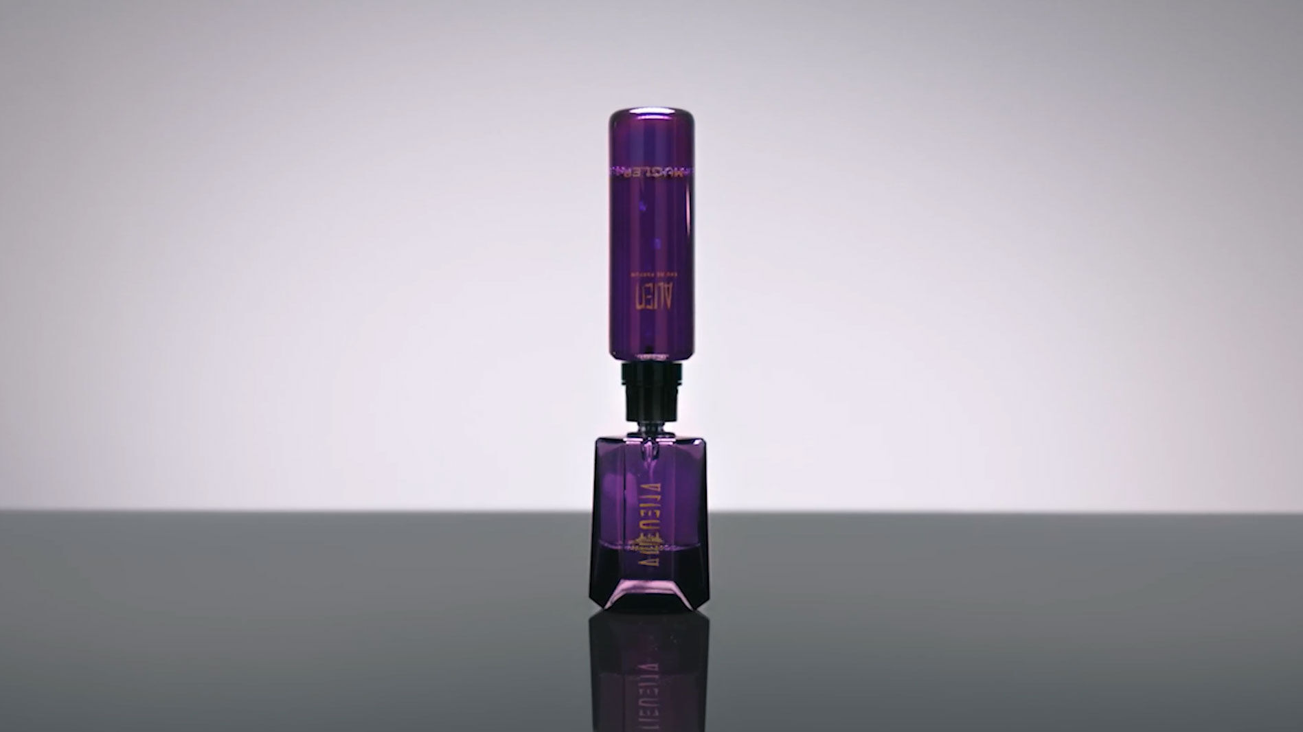 a mugler bottle is like a sculpture. the asymmetrical star, a symbol of maison mugler since its creation, is reinvented to rise proudly, like the woman angel nova, sure of her power over reality. mugler is shaking up its own codes to better symbolize daring and passion by dressing its bottle in rose. this vibrant color transforms the star to make it an emblem of liberation: reality becomes a universe to transcend.